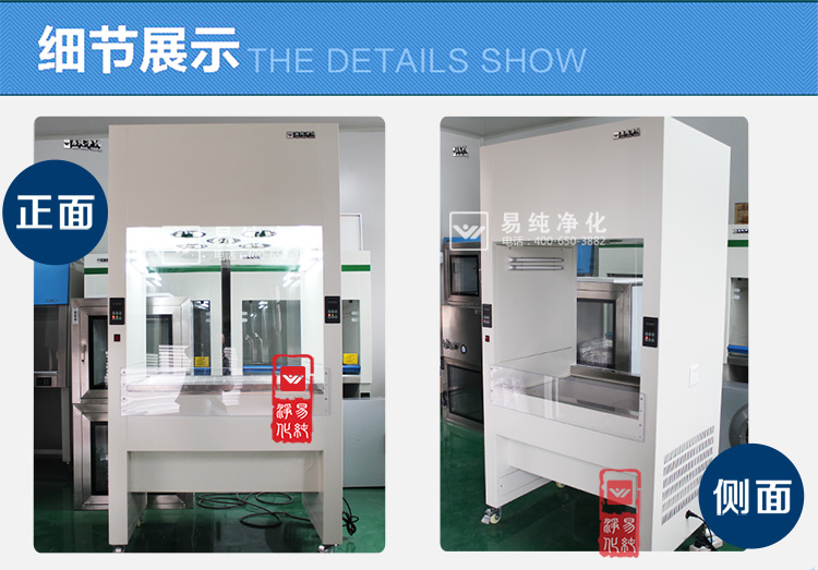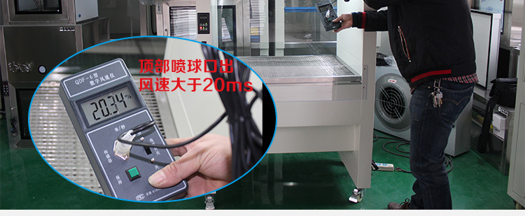上部吹風(fēng):上部有風(fēng)機(jī)和初高效過(guò)濾器,風(fēng)機(jī)經(jīng)過(guò)加壓將過(guò)濾后的潔凈空氣送入到工作區(qū)內(nèi),使工作區(qū)的環(huán)境達(dá)到百級(jí);