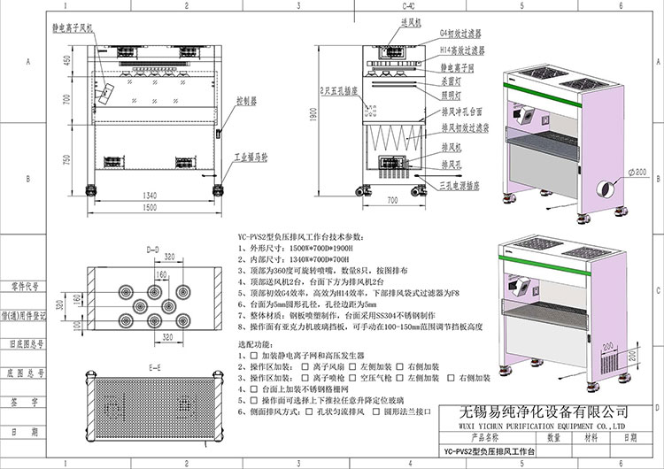 尺寸和工位選擇:由于此除塵超凈工作臺(tái)為非標(biāo)設(shè)備,具體尺寸可根據(jù)客戶的需求私人定制。